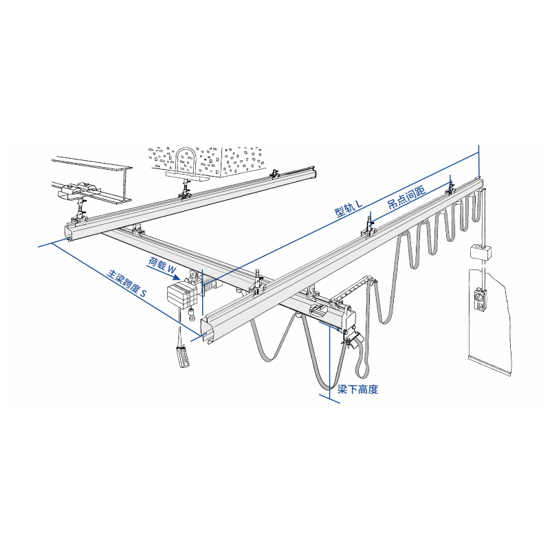| Önerilen maksimum kaldırma noktası aralığı: 1t 2. Standart ray uzunluğu ray başına 6 m'dir ve tek bir ray en az iki kaldırma noktası gerektirir. 3. Yukarıdaki yapılandırma kuralları SRKli yolunu temel almaktadır. | ||||||||