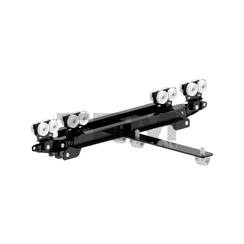 [Tramvay tekerlekleri, palet sırtına mükemmel uyum sağlayan belirli bir tekerlek açısına sahip yüksek mukavemetli naylondan yapılmıştır. Araba, çalışma sırasında otomatik olarak ortalanır. Araba, ray açıklıklarında sürtünmeyi önlemek ve çalışma direncini artırmak için bir kılavuz tekerlek yapısıyla donatılmıştır. Yatay olarak konumlandırılan iki kanat, arıza durumunda arabanın raydan düşmemesini sağlayarak güvenliği tam anlamıyla sağlar.]