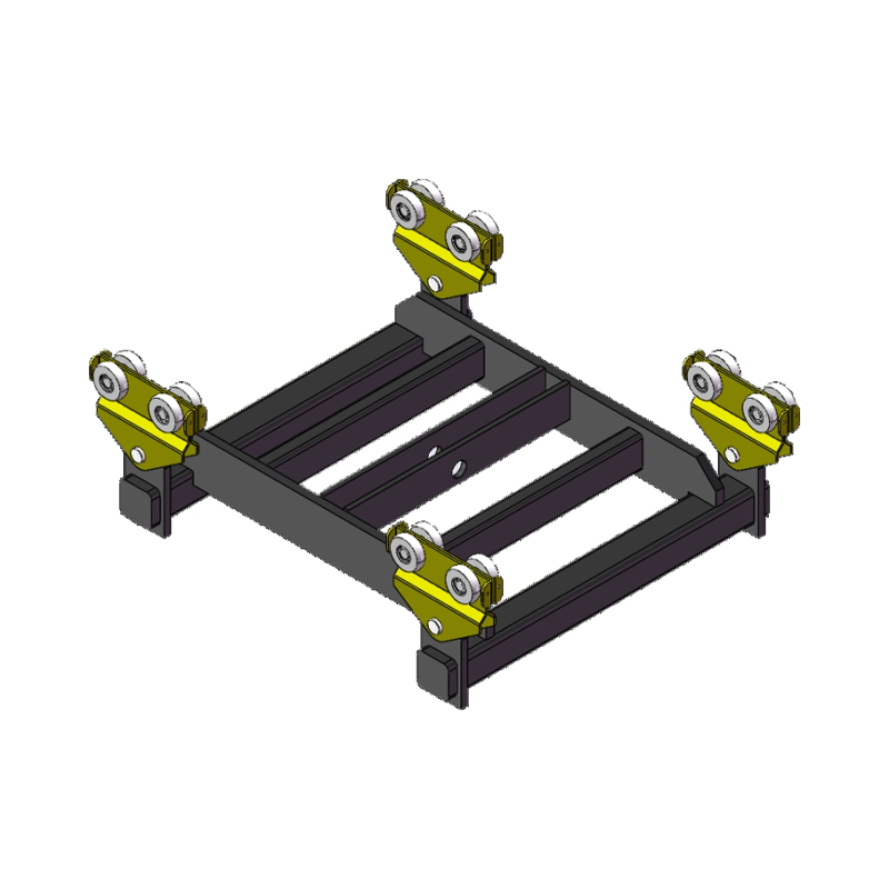 █Uzun kirişli araba, kaldırma mekanizmalarını vb. asmak için kullanılır. Tekerlekleri yüksek mukavemetli naylondan yapılmıştır ve uygun bir eğime sahiptir, bu da bunların ray sırtına uyum sağlamasına olanak tanır, düzgün çalışma ve otomatik merkezleme sağlar. Her iki uçtaki bükülmüş kanatlar, arabanın kazara raydan düşmesini önleyerek tam güvenlik sağlar.